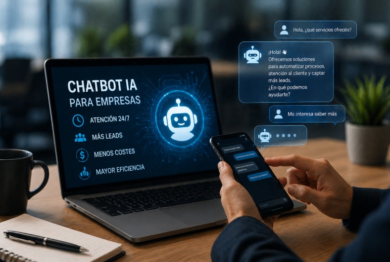 Un chatbot con IA permite automatizar la atención al cliente, responder en tiempo real y gestionar múltiples conversaciones de forma simultánea. Esto se traduce en mayor eficiencia, mejor experiencia para el usuario y un aumento directo en la captación de leads.